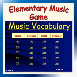 Check out these fun activities for teaching and assessing music vocabulary from K-6th grades—Card Set Bundle, High-Low, Fast-Slow, Loud-Soft, Vocabulary Powerpoint Game.